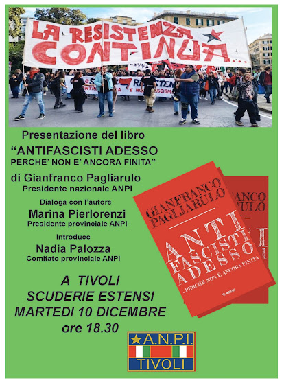 Questo blog non rappresenta una testata giornalistica in quanto viene aggiornato senza alcuna periodicità. Non può pertanto considerarsi un prodotto editoriale ai sensi della legge n. 62 del 7/03/2001. Il blog è strumento di comunicazione degli eventi (e i relativi commenti) organizzati dal Comitato Provinciale e dalle Sezioni dell’A.N.P.I. Provinciale di Roma; promuove la libertà di pensiero, aderisce ai principi della Costituzione repubblicana, è antifascista e antitotalitario.
